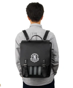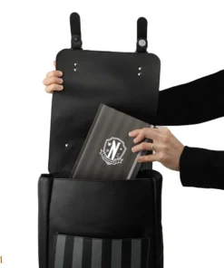 For those who resonate with Wednesday Addams’ individuality and unapologetic style, this Black Nevermore Academy Backpack is the perfect accessory. Inspired by her black and grey take of her blazer, this backpack is a reflection of Wednesday’s individuality.