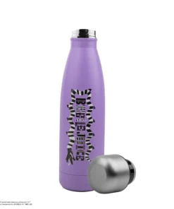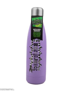 Featuring the iconic black and white Sandworm against a vibrant purple backdrop, this bottle is a striking homage to the peculiar world of Beetlejuice.