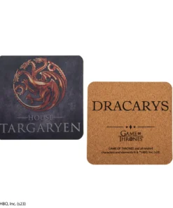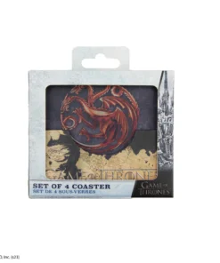 This set includes four beautifully crafted coasters featuring the house sigils of the four iconic houses from the beloved fantasy series, including House Stark, House Targaryen, House Lannister, and House Baratheon.
