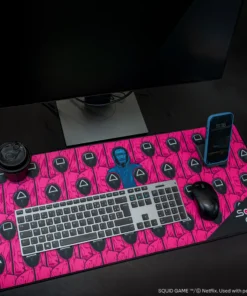 Experience the thrilling world of Squid Game with our exclusive desk mat, inspired by the show that has hooked viewers across the world. This eye-catching mat comes in the same pink as the guards’ outfits, adding a unique accessories to your desk.