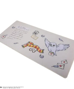 Elevate your workspace with our Hedwig Desk Mat, featuring a captivating design that pays homage to the magical world of Harry Potter. This desk mat boasts a grey background adorned with intricate details of Hedwig, Harry’s glasses, a Gryffindor scarf, and elements of his admission letter as well as Platform 9 3/4 graphics.