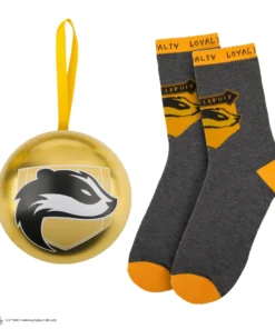 Enjoy a Christmas bauble that will look perfect hanging on your tree, or gift this ornament to your loved ones for them to discover a surprise gift on the inside: a one-size Hufflepuff-inspired pair of socks.