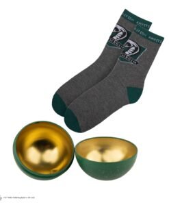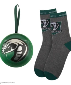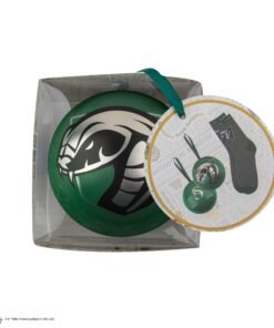 Enjoy a Christmas bauble that will look perfect hanging on your tree, or gift this ornament to your loved ones for them to discover a surprise gift on the inside: a one-size Slytherin-inspired pair of socks.