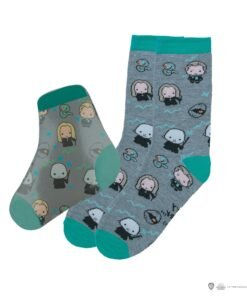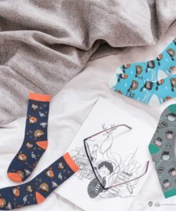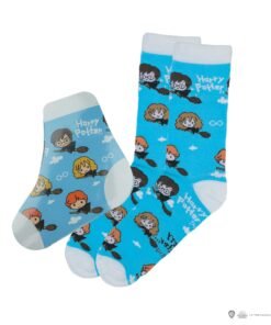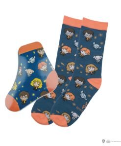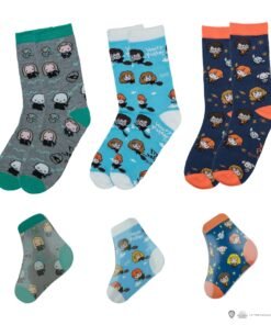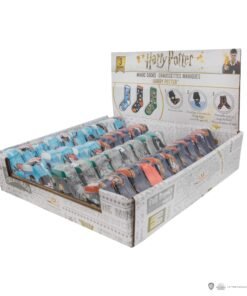These magical Harry Potter socks by Cine Replicas come in a collectible box with 40 pairs featuring three unique designs: *Harry Potter & Friends*, *Starry Night at Hogwarts*, and *Dark Arts*. Made from a blend of 80% cotton and 20% spandex, they ensure comfort for wizards of all ages. Each sock magically expands in water, making them not only functional but fun for young fans. The box’s designs capture iconic characters and symbols from the wizarding world, adding a touch of Hogwarts to your everyday style.