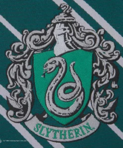 This Slytherin tie has a fine finishing with a woven Slytherin crest.