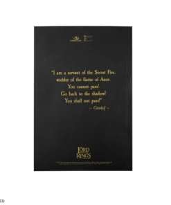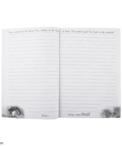 Inside you will find the lined pages with the Gandalf’s phrase “I am a servant of the Secret Fire, wielder of the flame of Anor. You cannot pass! Go back to the shadow! You… Shall not pass!” on the top and bottom pages. Carry this notebook to keep your writings, ideas and notes safe.