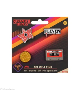 Our set of four Stranger Things pins is a must-have accessory for any fan of the Netflix series. A Waffle, Eleven name, the Demogorgon, and a Mixtape are the four emblematic items that comprise the first season pin set.