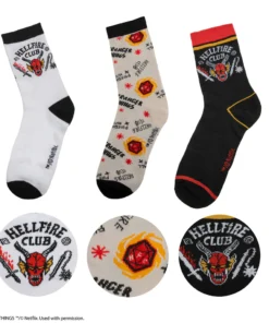 Elevate your everyday attire with a hint of the Hellfire Club. The set comes with three distinct pairs of socks featuring the club’s theme. Inspired by the bold colours and detailed graphics, these socks are perfect for showcasing your fandom in a subtle yet striking way.