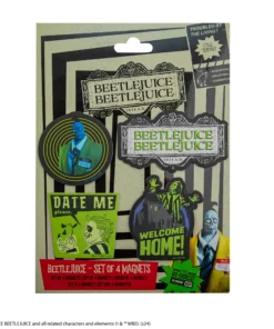 Delve into the enchanting chaos of the afterlife with our Beetlejuice Magnets Set! Featuring vibrant pop-art-style greens that embody Beetlejuice’s wild spirit against a striking black backdrop.