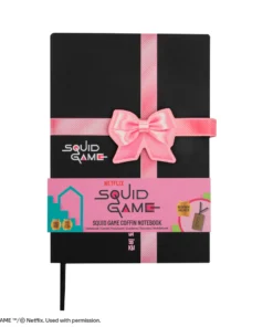 Embark on a journey into the world of Squid Game with our Coffin Hardcover Notebook. Wrapped in a deep black color, the notebook features a subtle soft pink bow, reminiscent of the decorations on the eliminated contestants’ coffins in the suspenseful series.