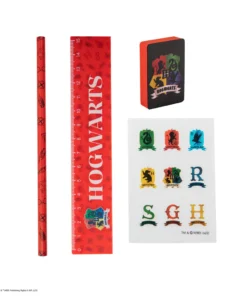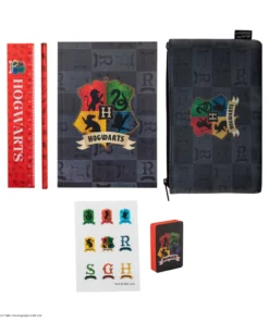 This set includes a deluxe notebook, a pencil, a ruler and an eraser with an Hogwarts crest in dark and intense colours. And to further customise your items, Hogwarts-themed stickers are also included.