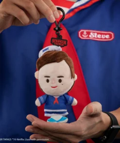 Dressed in his signature sailor outfit from the vintage ice cream parlor, this keyring plush embodies Steve’s laid-back charm and adventurous spirit. Just like Steve Harrington himself, this plush keyring is ready to accompany you on all your journeys, whether it’s clipped onto your keys, bag, or backpack.
