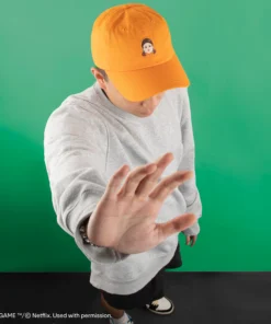 The vibrant orange colour not only adds brightness to any ensemble, but it also instills a sense of vigour. Young-hee’s visage on the cap offers a distinct sense of seriousness and authority, improving your appearance with a touch of personality.